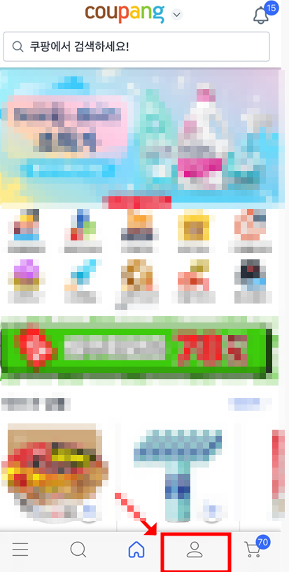 1. 쿠팡 홈페이지 첫 화면 맨 밑에 사람그림을 클릭합니다.