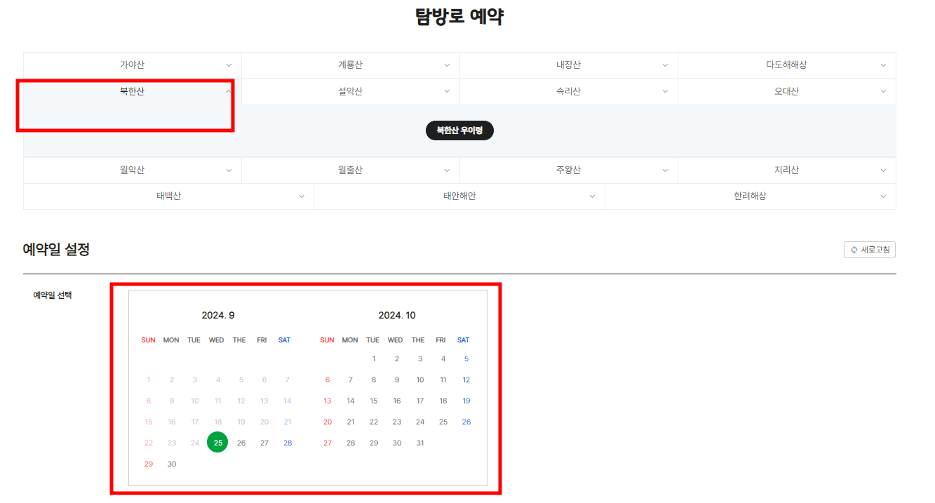 국립공원 홈페이지 > 국립공원 예약 >탐방로 예약 > 북한산