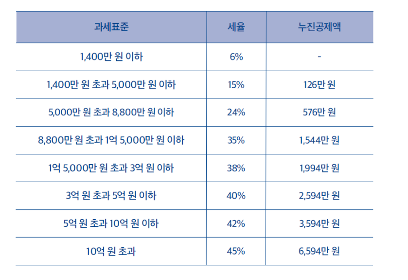 즉, 1억원의 퇴직금을 받으면 누진공제액 1,544만원을 뺀 나머지 9억 8천 4백 88만원에서 35%의 세금을 공제하게 됩니다.