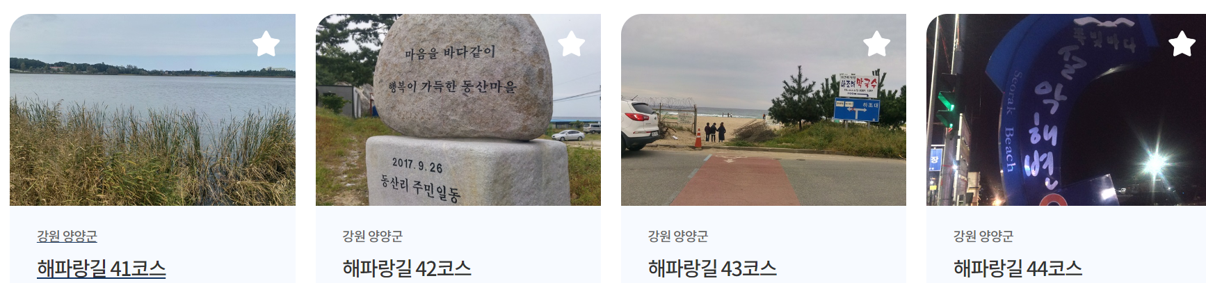 해파랑길 양양 속초는 다양한 볼거리와 먹을거리, 손꼽히게 아름다운 조망이라는 주제로 조성되었으며 41코스부터 45코스까지 이어지는 곳입니다.