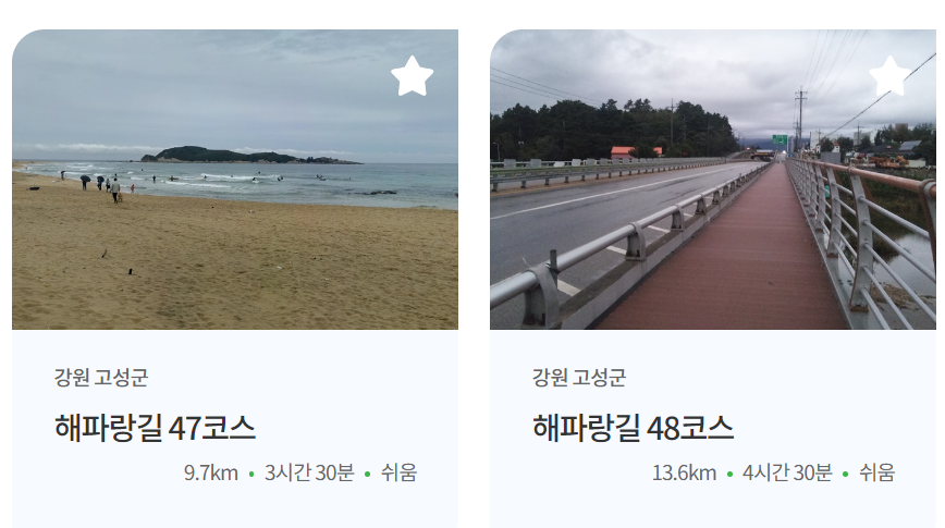 아름다운 절경과 명승지, 대한민국 최북단 고성이라는 주제로 조성된 해파랑길 마지막구간인 10구간은 46코스부터 50코스까지 이어져 있습니다.
