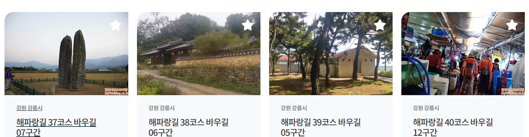 솔향 폴폴 풍기는 감자바우길, 강릉 바우길과의 행복한 만남 이라는 주제인 해파랑길 강릉은 35코스부터 40코스까지 이어져 있습니다.
