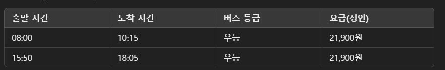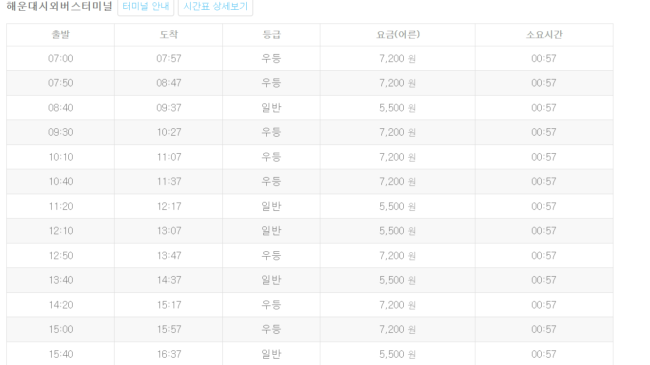울산시외버스터미널 시간표