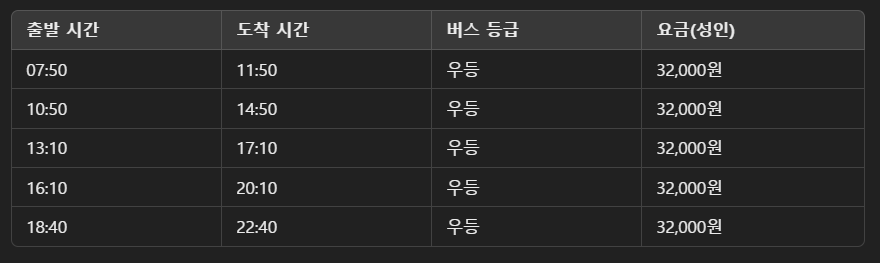 1. 출발시각까지 발권 또는 취소를 하지 않은 예매 건은 익일 자지정차 출발 2일 전까지 수수료가 없습니다.