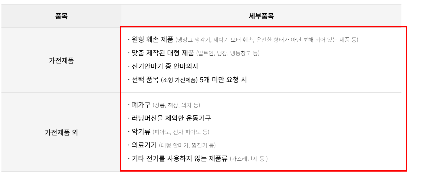 4. 사람이 직접 들 수 없는 대형 제품(사다리차 필요 등)은 사전에 수거가 가능한 상태로 준비해 주세요.