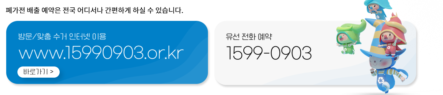 인터넷이나 전화를 통해 신청만 하면, 지정한 날짜에 수거기사분이 직접 방문해 가전제품을 가져가 주는 친절한 제도죠.