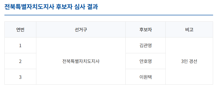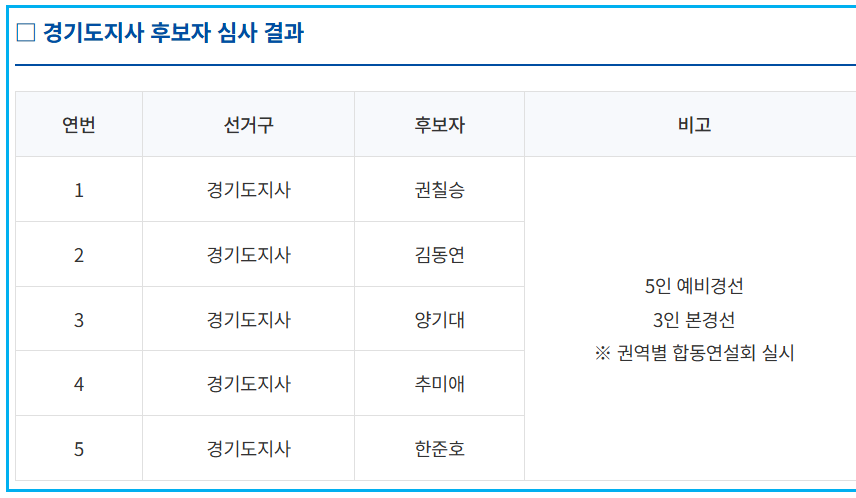 등 일부 광역단체장 후보를 먼저 확정하며 선거 준비를 빠르게 진행하고 있습니다.