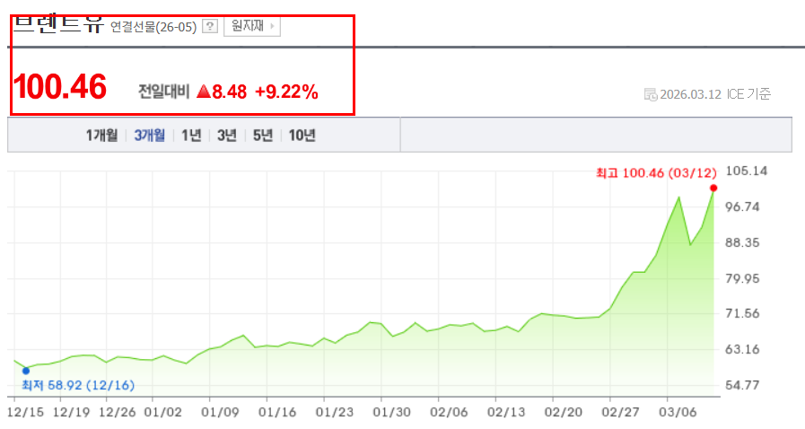 국제유가 100달러 돌파 상황