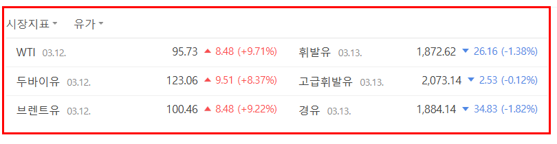 국제유가가 100달러를 돌파한 상황에서