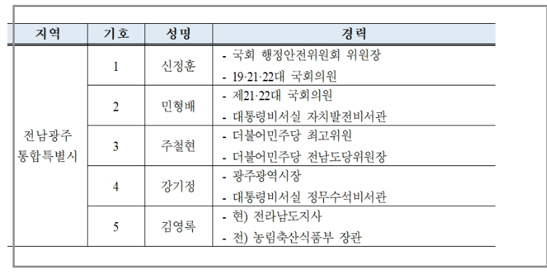 전남·광주 통합특별시장 경선.
