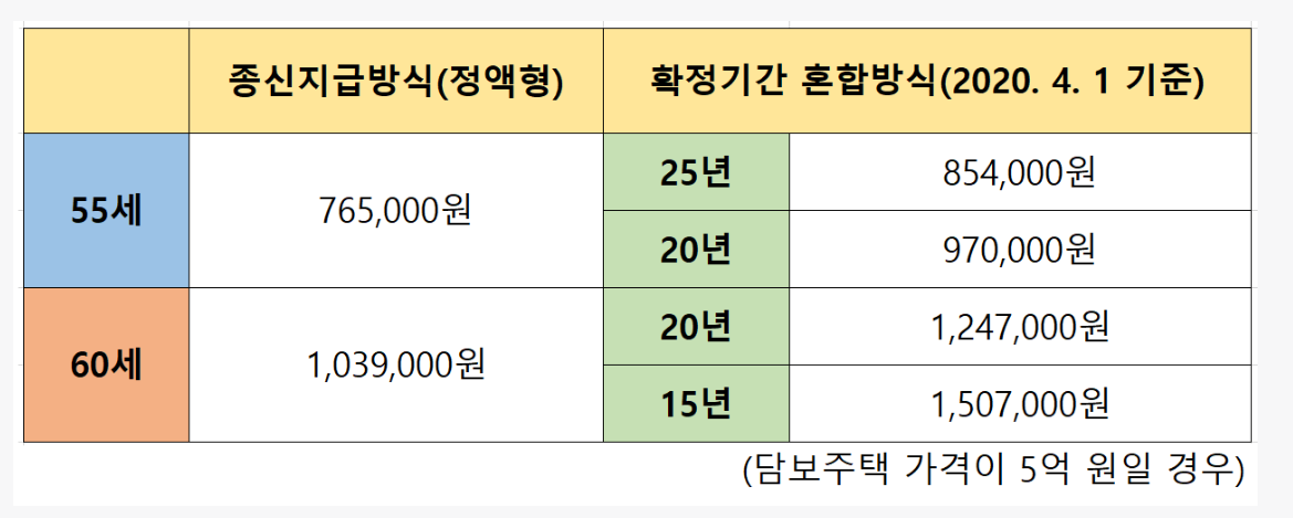 주택연금 예상수령액 표